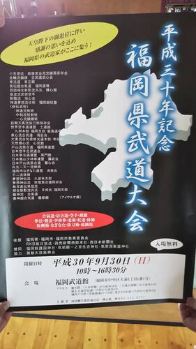 平成30年記念福岡県武道大会日時 平成30年9月30日(日) 10:00~16:30場所 福岡武道館福山三段・谷口二段による、日本拳法道乱取競技法試合演武